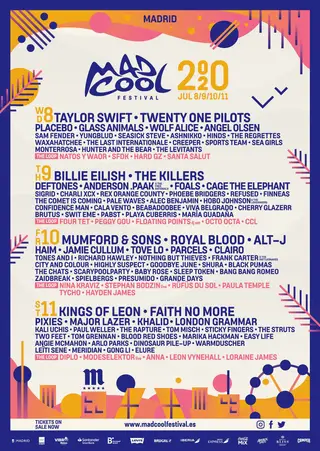 Pelo Mad Cool passarão nomes que também atuarão no festival de Algés, como Billie Eilish, Taylor Swift, Alt-J ou os Faith No More, e artistas que têm vinda garantida a Portugal noutros festivais que não o NOS Alive, como os Foals, os Pixies, os Placebo e os Deftones.